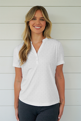 This Polo delivers a sleek, modern look with its dynamic sublimated pattern and flattering silhouette. Engineered with moisture-wicking stretch fabric and a UPF 50+ rating, this polo keeps you cool, dry, and confident from the office to the outdoors.